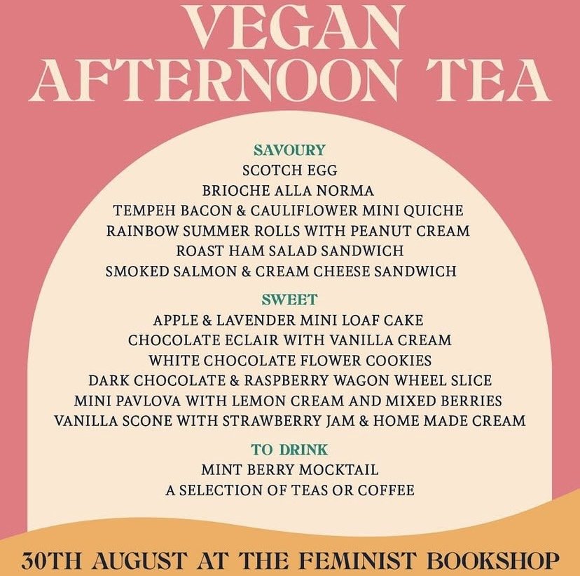 Join us for our second vegan afternoon tea on Bank Holiday Monday 30th at the wonderful @thefeministbookshop in Brighton. Following the success of our last event, we are back with a brand new menu (don’t worry, we’ve kept a few favourites) and we are excited to make it for you!