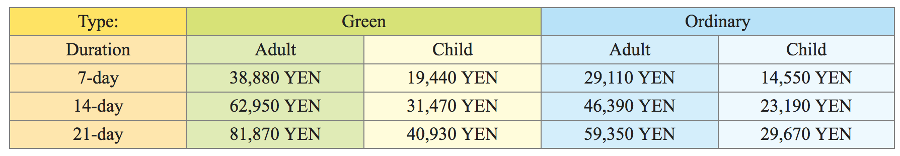 These costs were taken from the JR pass website